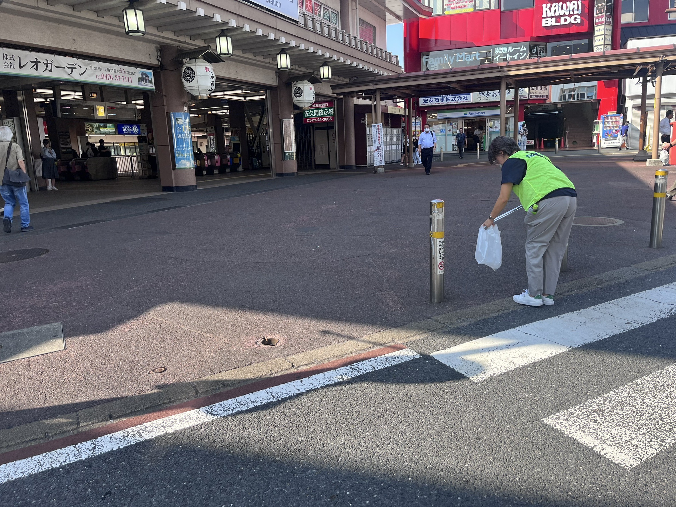 朝から日差しが強く猛暑日の中、京成成田駅前を中心にゴミ拾いをしました。